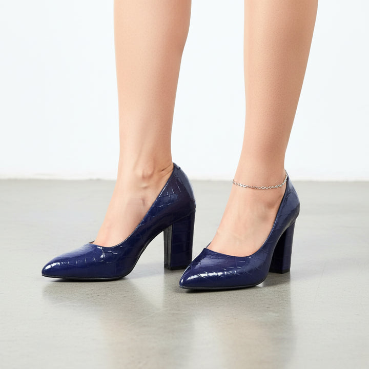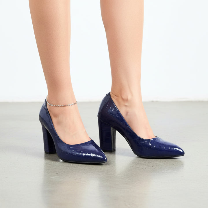 Women's Classic Faux Crocodile Leather Pumps – 3-Inch Block Heel