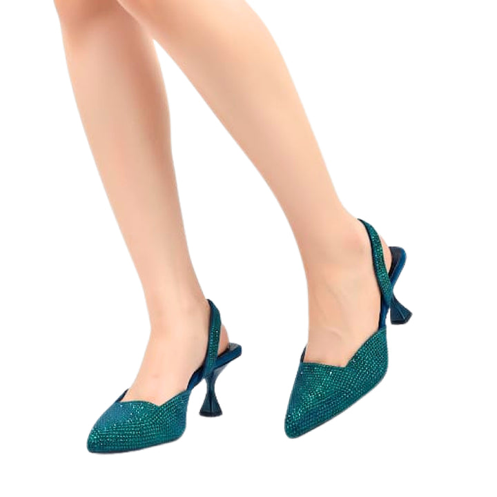 Step into style with Origin Shoes' Green Crimson Dazzle Slingback Heels. Designed with premium materials and a chic 2.5-inch heel, these sandals offer the perfect balance of comfort and glamour. Ideal for weddings, parties, and festive events. Enjoy fast delivery across Pakistan.